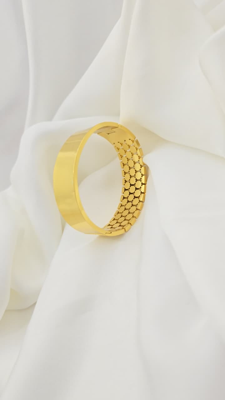 Experience the epitome of luxury with the Black Gem Gold Gala Cuff, a wearable work of art that exudes elegance and refinement. Meticulously constructed from high-quality materials, this cuff features a striking black gemstone encased in a radiant gold setting.