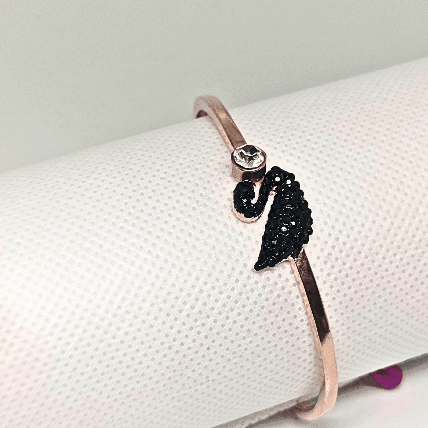 Rose Gold Stainless Steel Stone-Studded Swan Bangle
