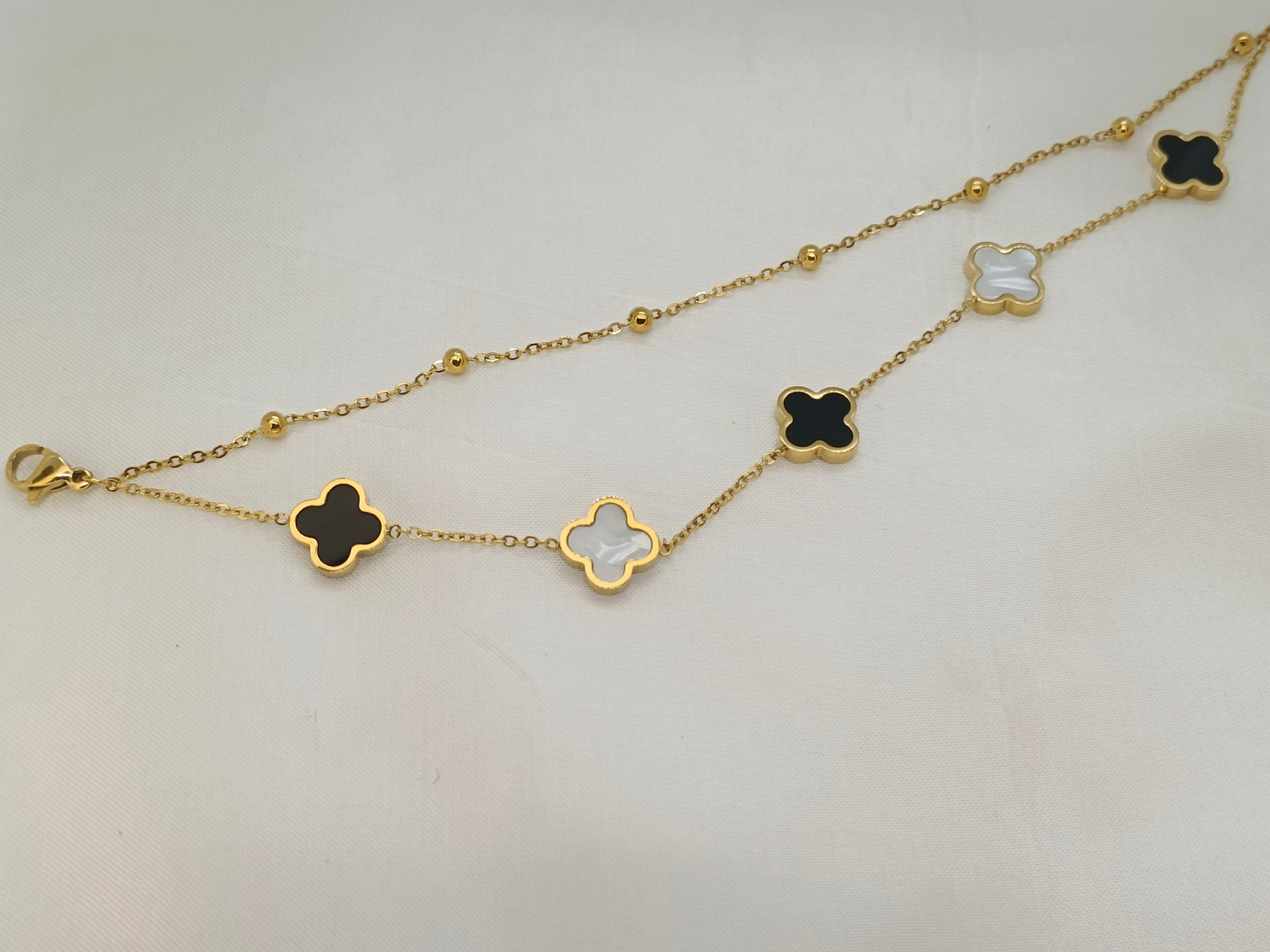 Make a bold fashion statement with this stunning Stainless Steel Double Layer Double-Sided clover Bracelet. Expertly crafted from high-quality stainless steel, this bracelet features an innovative double-layered design that adds depth and dimension to your look.