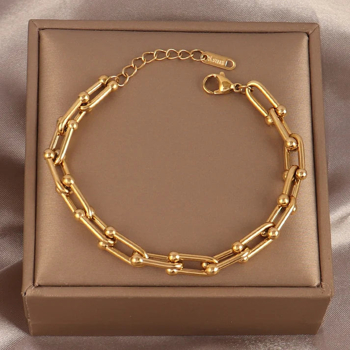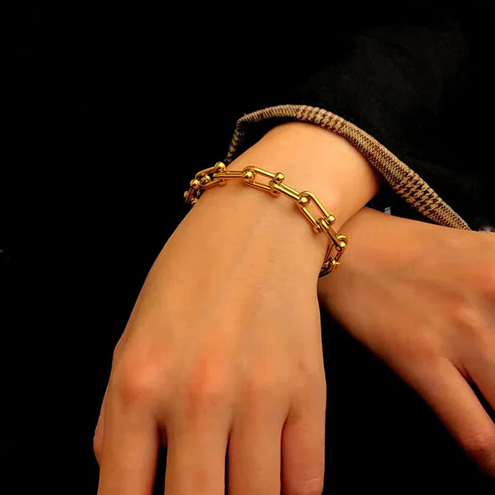 Elevate your style with this chunky Hop and Link Chain Bracelet crafted from premium stainless steel. Its robust design offers lasting durability while making a bold, sophisticated statement. Perfect for those who appreciate contemporary fashion with a timeless edge.