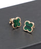 Trendy Black and Gold Four Leaf Clover Stud Earring