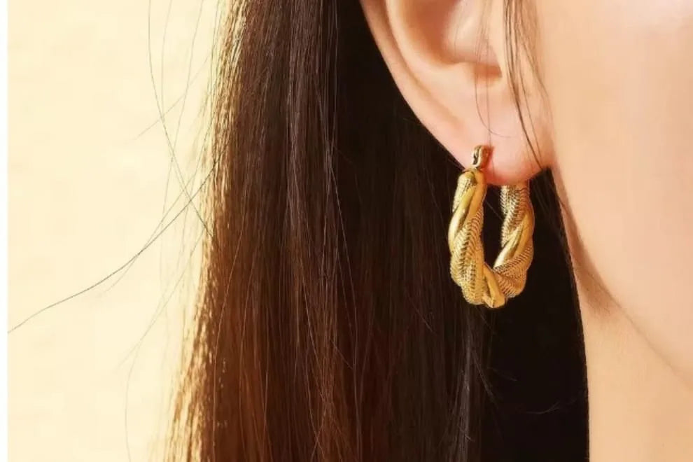 Luxuary Twisted Hoops | Stainless Steel | Hoop Earrings The stainless steel ensures durability and resistance to tarnish, water, and sweat, so these earrings retain their shine and beauty over time. Hypoallergenic and gentle on the skin, they provide comfort for all-day wear without irritation.