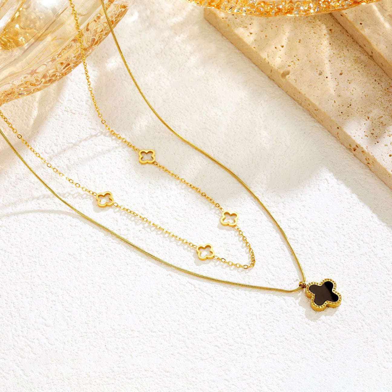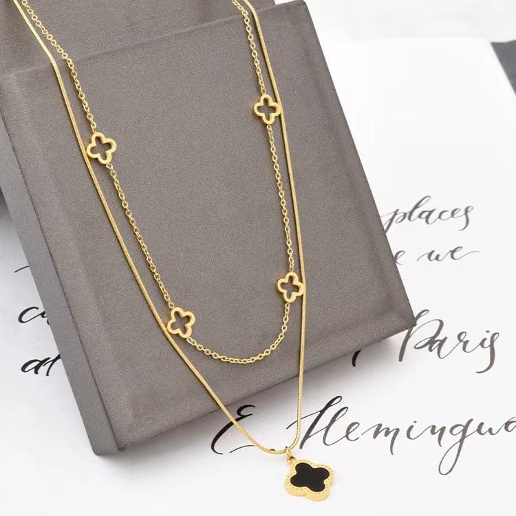 Double Layer Four Leaf Clover Necklace -Water Proof & Gold Plated
