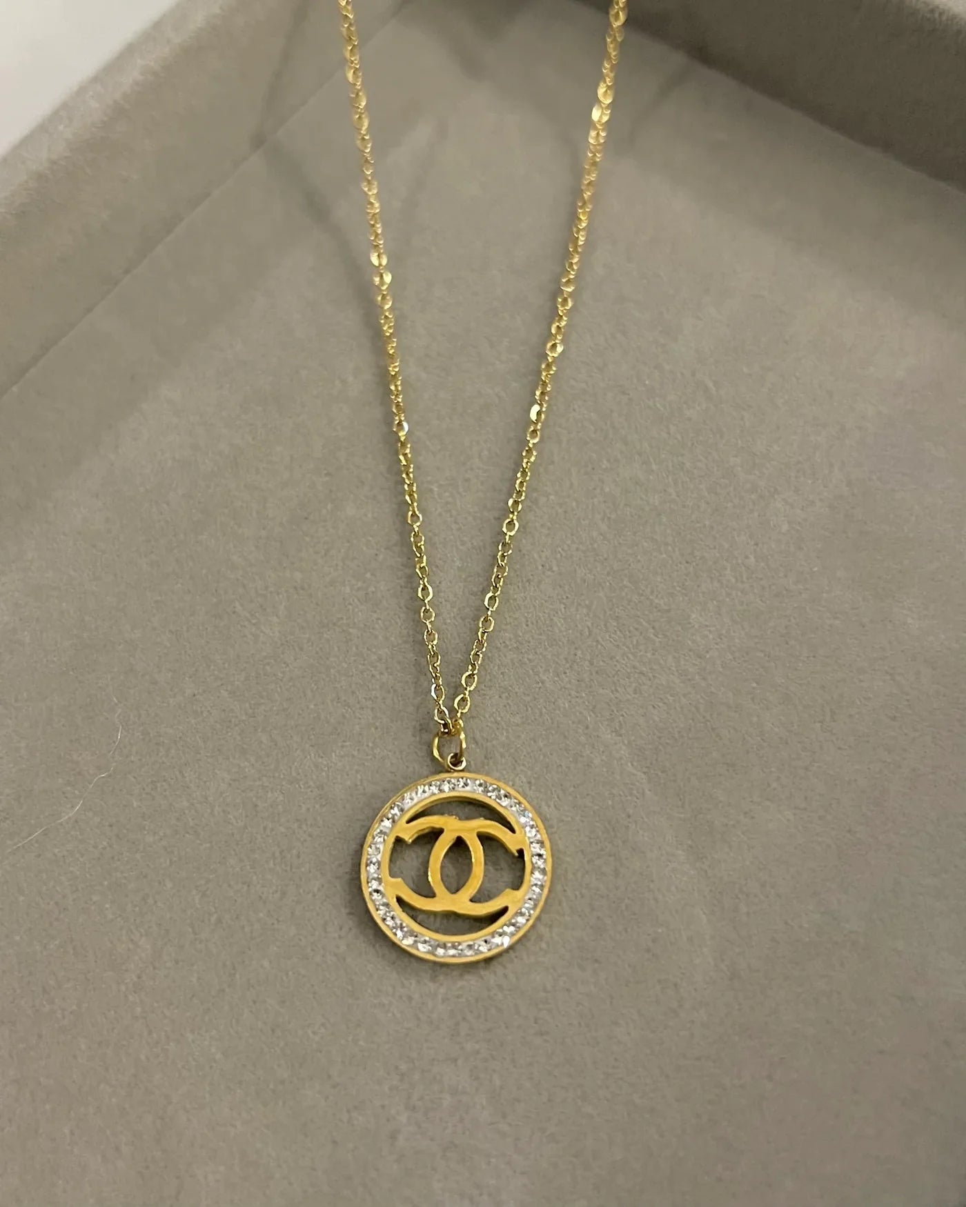Stone Studded Golden Chain Pendant Necklace All our jewelry is made of stainless steel material.  This means the color will last for a really long time (at least a few years). It will not fade quickly and it's also an anti-scratch material.