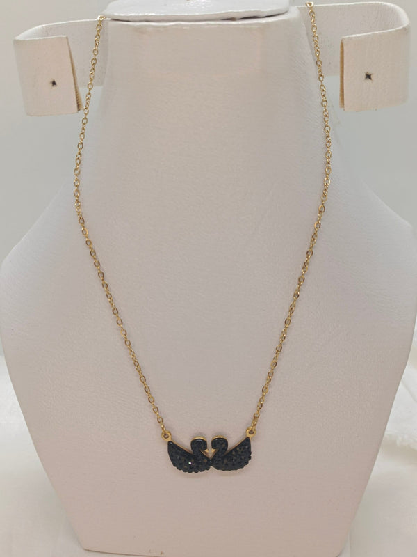 Classic Stainless Steel Double Swan Pendant Necklace