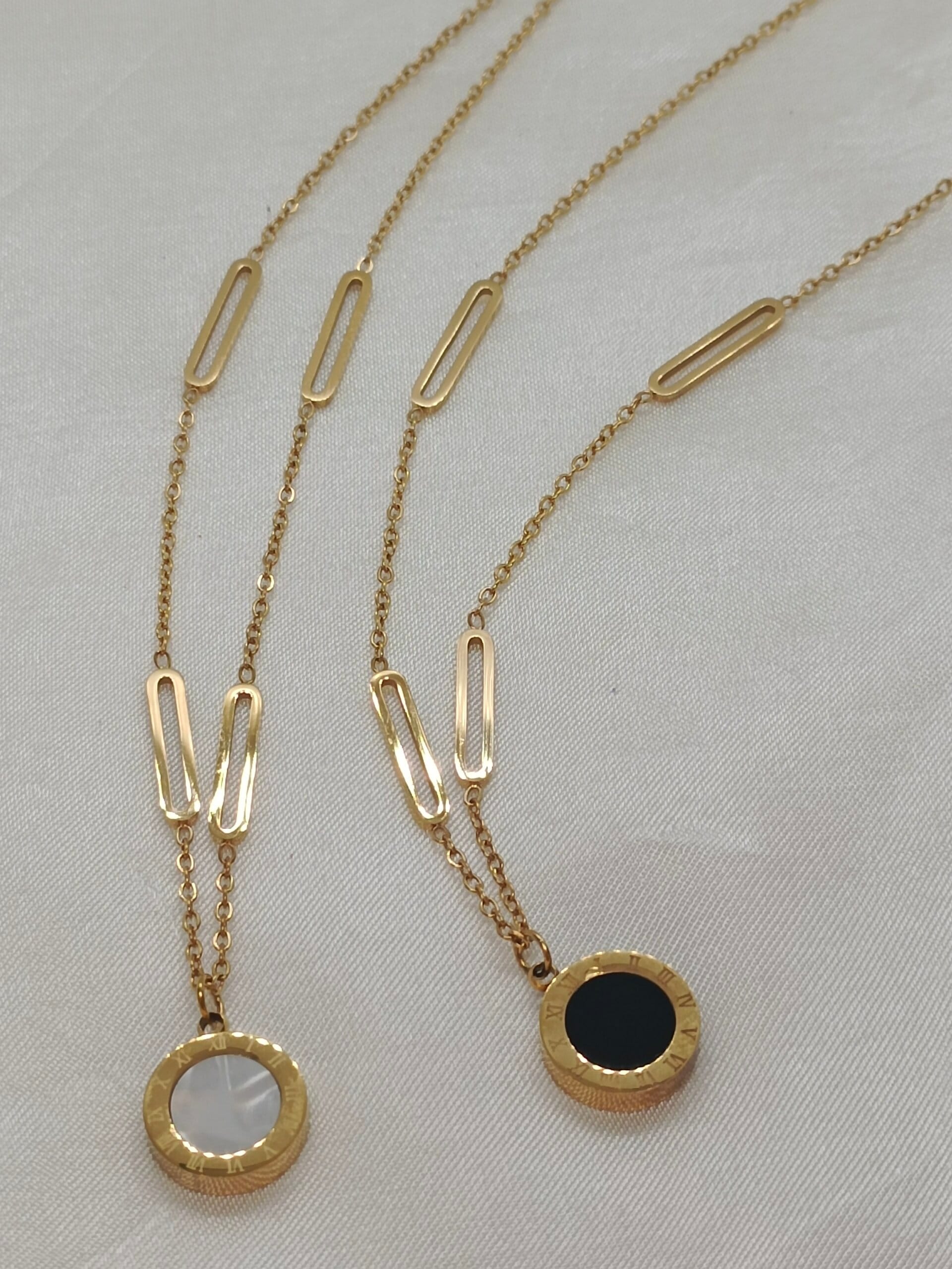 Necklace with pendant golden, reversible necklace black or white pearl modern stainless steel chain waterproof, necklace jewelry for women.