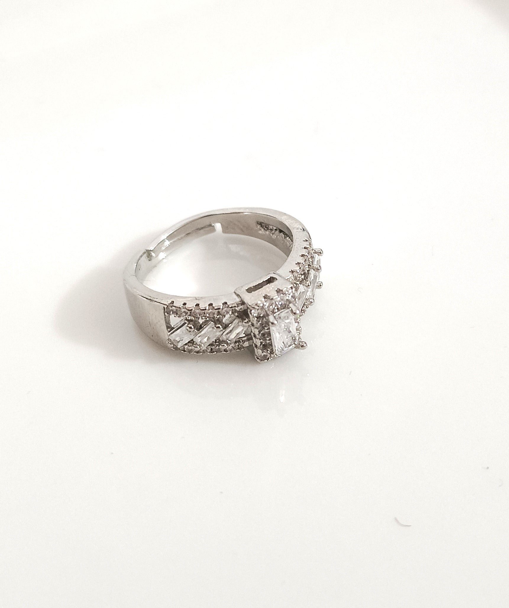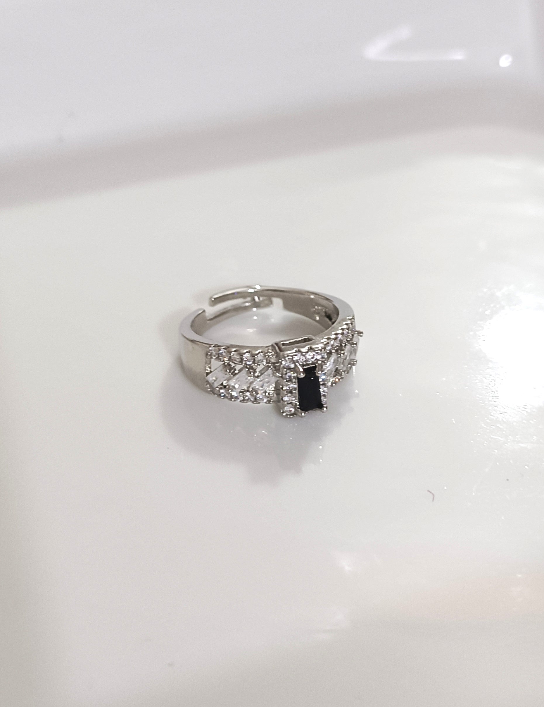 Silver Adjustable Crystal Ring