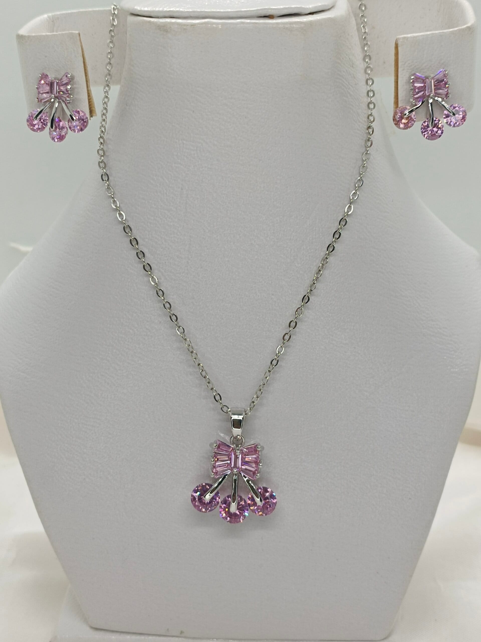 Premium Quality Sterling Silver Pink Zircon Pendant Necklace Set