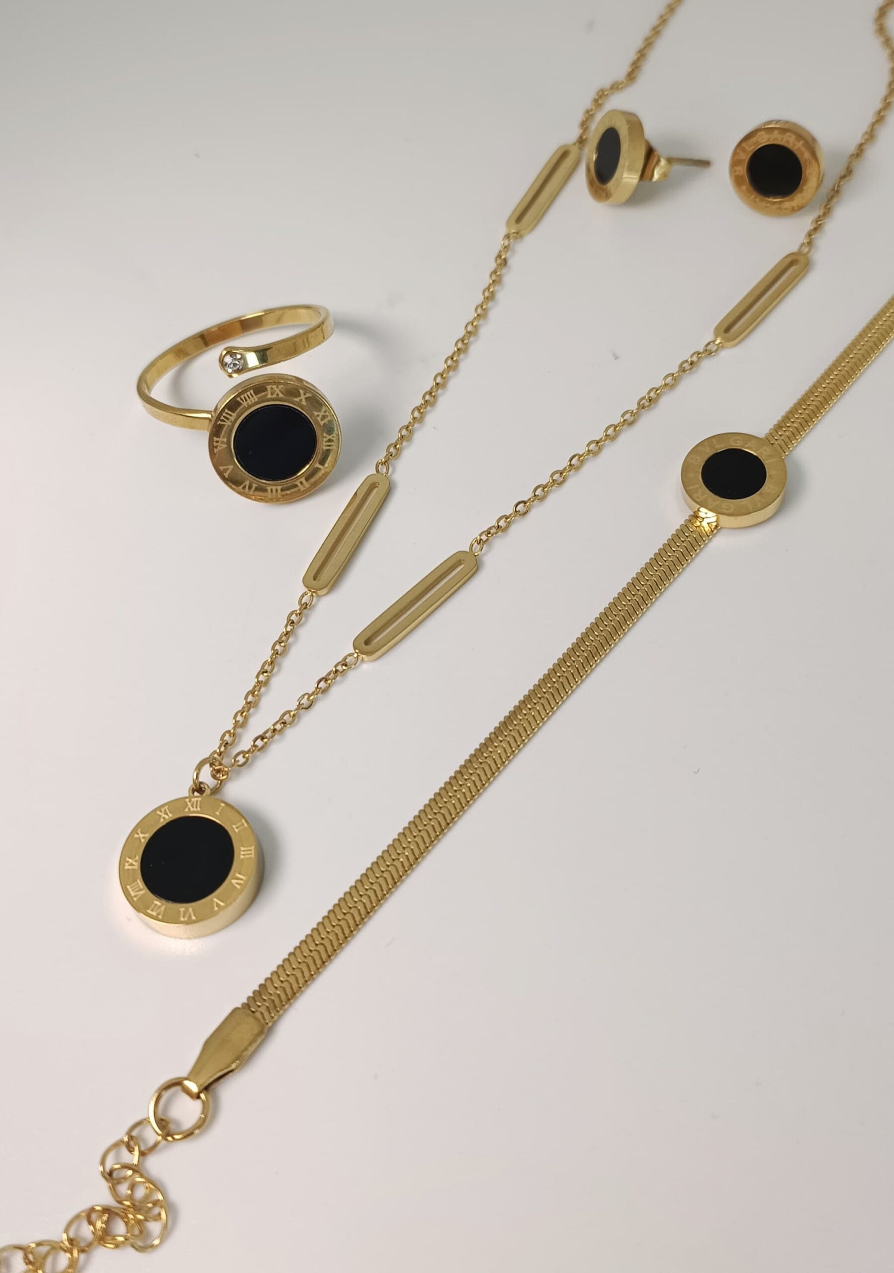 Elevate your style with our exquisite Stainless Steel Roman Combo Set, crafted from high-quality stainless steel that is both durable and elegant. This versatile piece features a unique design with stunning stones. Whether you’re dressing up for a special occasion or adding a touch of sophistication to your everyday look, this bracelet offers the perfect balance of modern chic and timeless elegance.