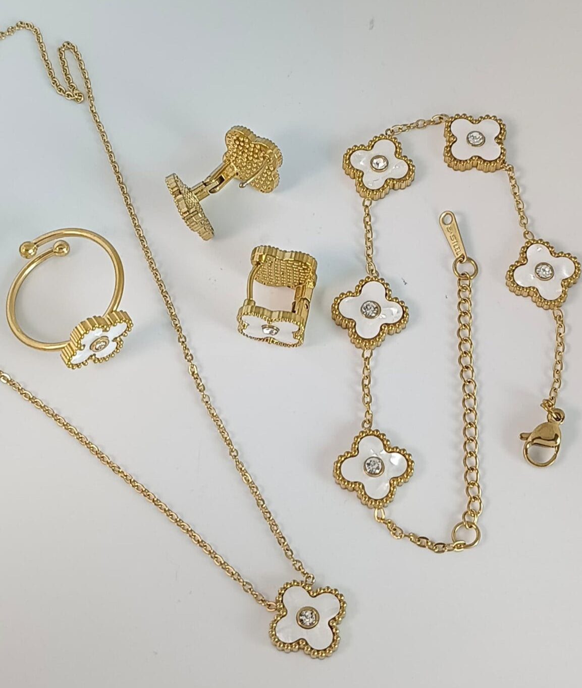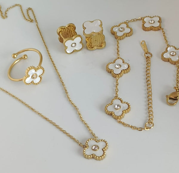 Stainless Steel 4 Pieces White Color Clover Combo Set | Water resistant