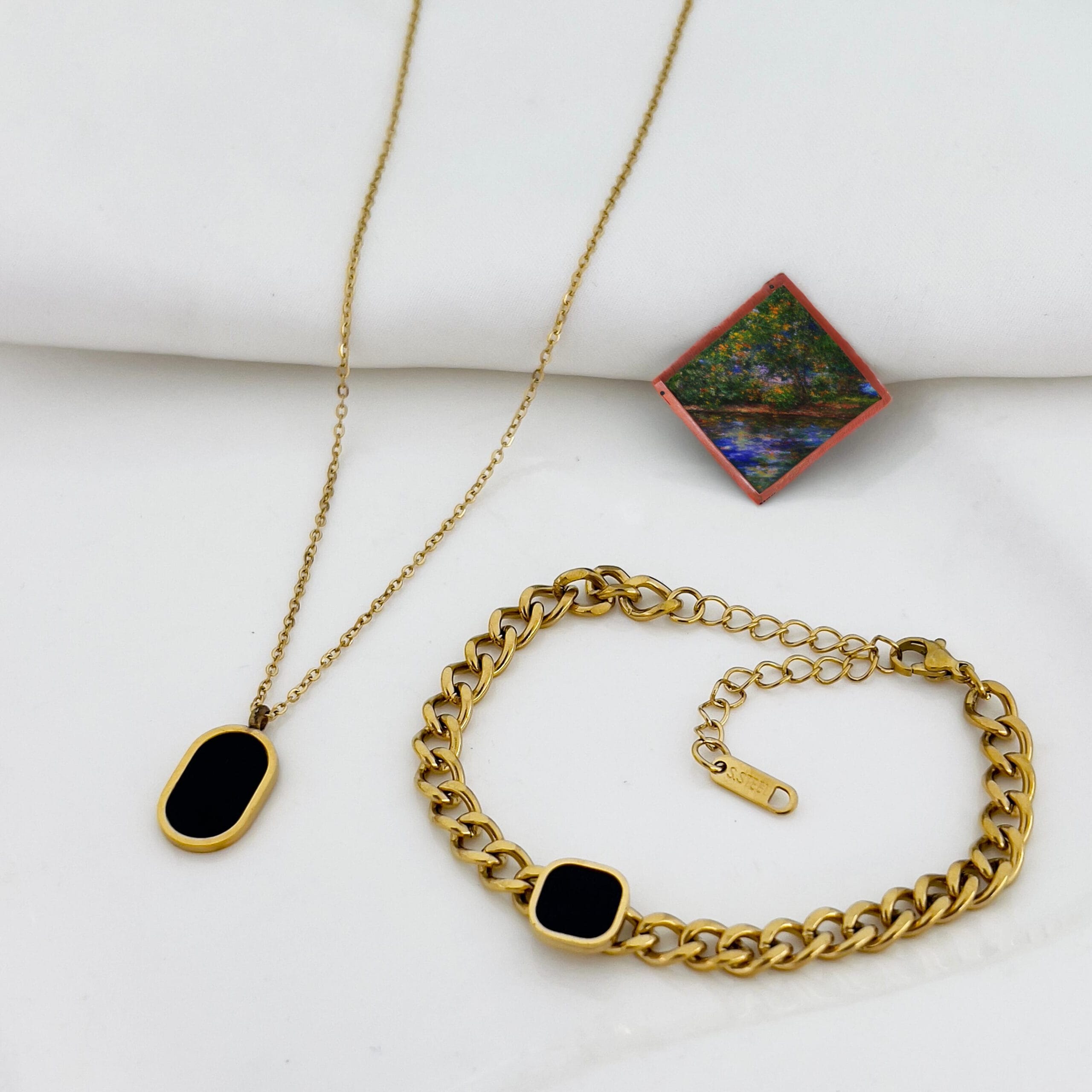 Gold Plated Square Shape Bracelet and Necklace | Water Proof | Premium Quality