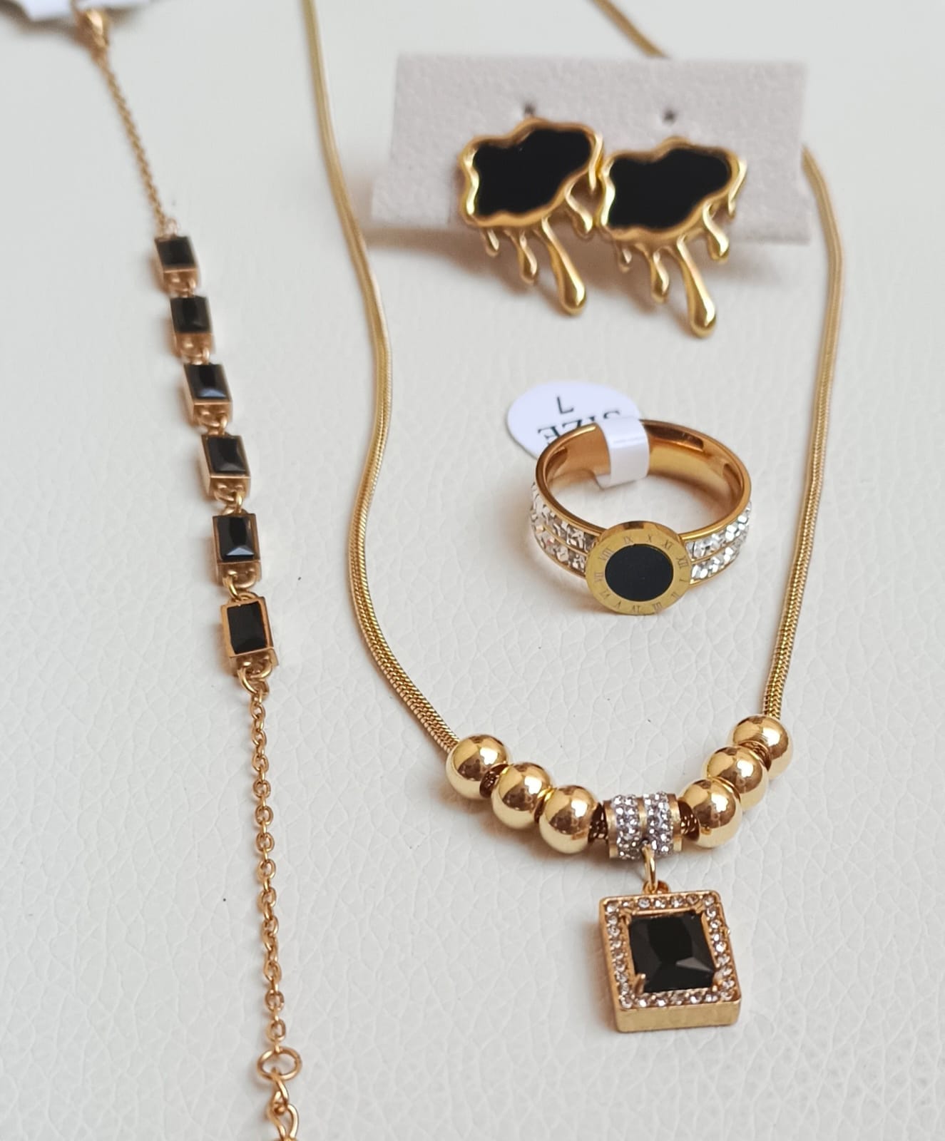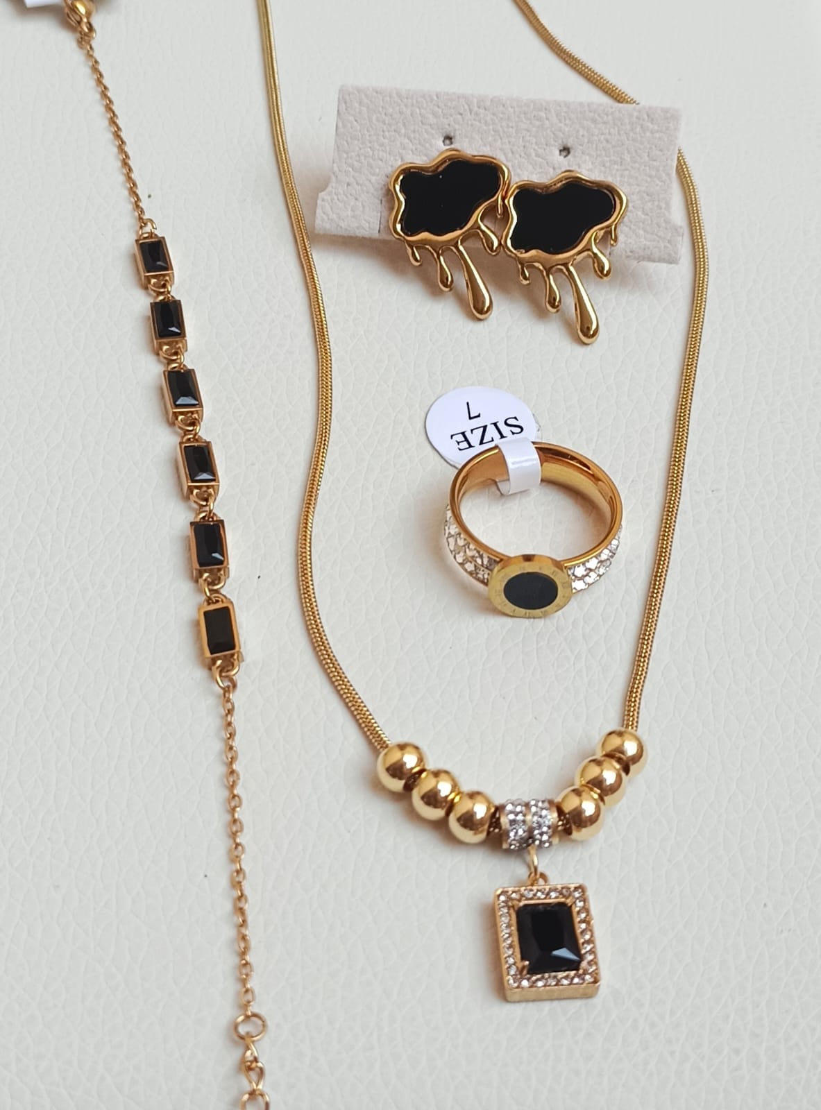 Premium Zircon Black 4 pcs Combo Set | Tarnish Free