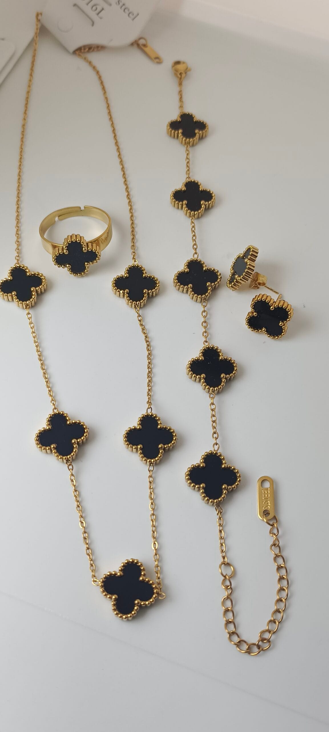 Stainless Steel 4 Pieces Black Color Clover Combo Deal | Water resistant