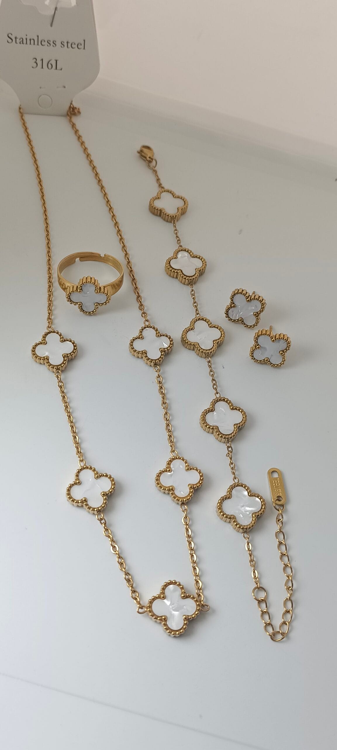 Neckless, Adjustable Ring, Earring And Bracelet