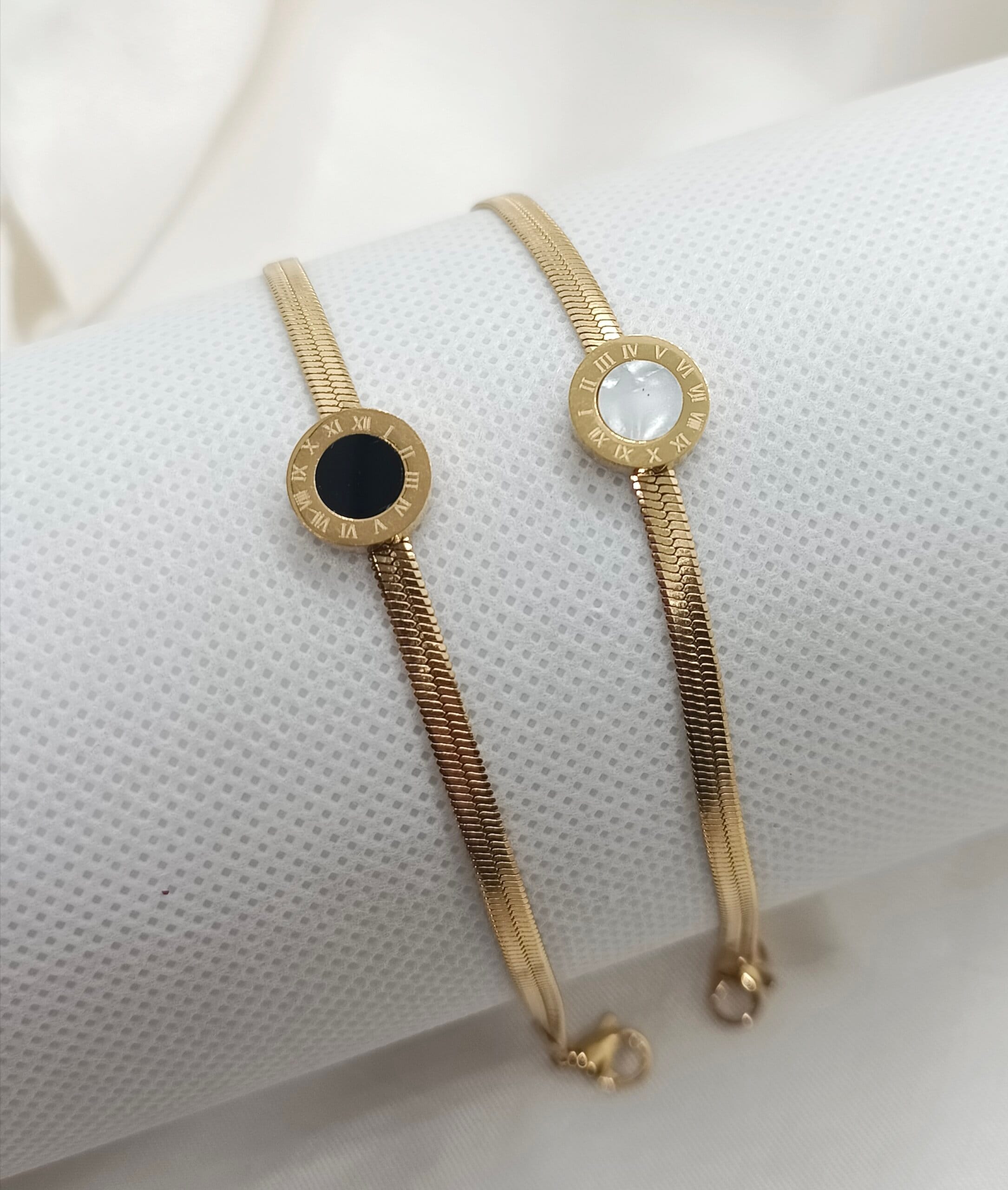 Stainless Steel Black Round Roman Numerals Snake Chain Bracelet New Fashion